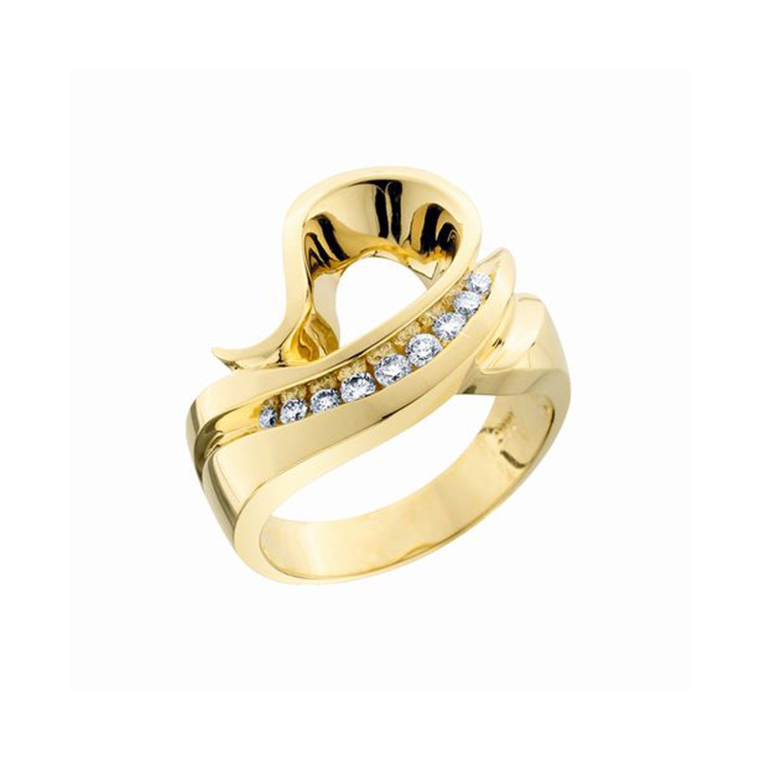 14k Yellow Gold and Diamond Semi Ring