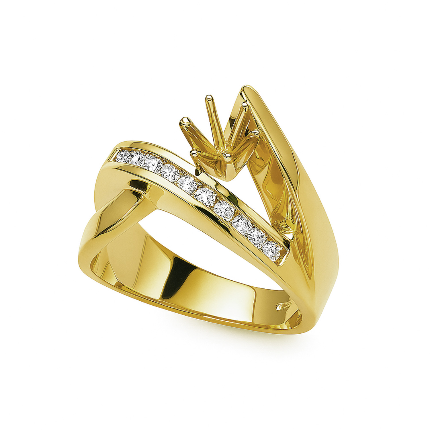 14k Yellow Gold and Diamond Semi Ring