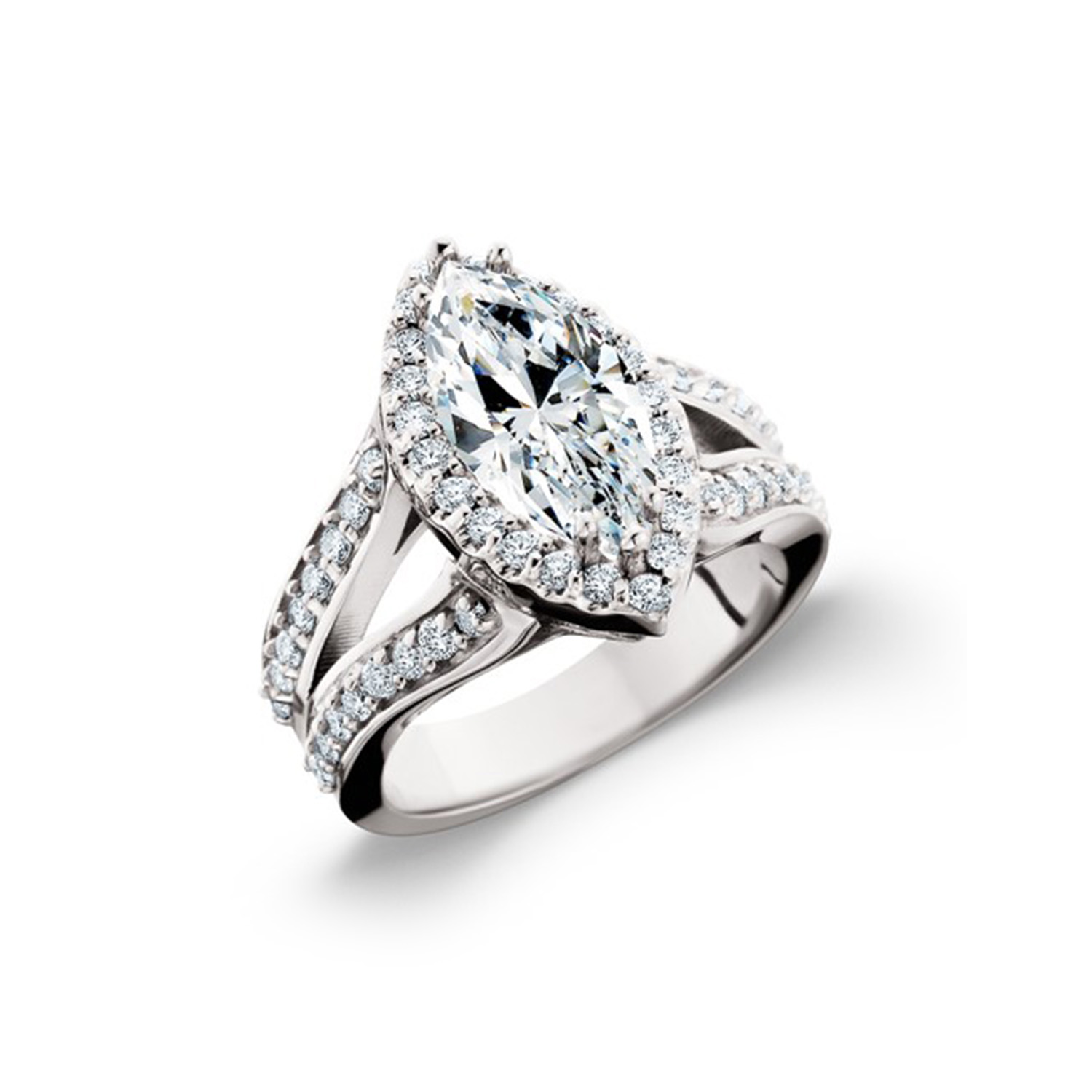 14k White Gold and Diamond Halo Marquise Engagement Ring