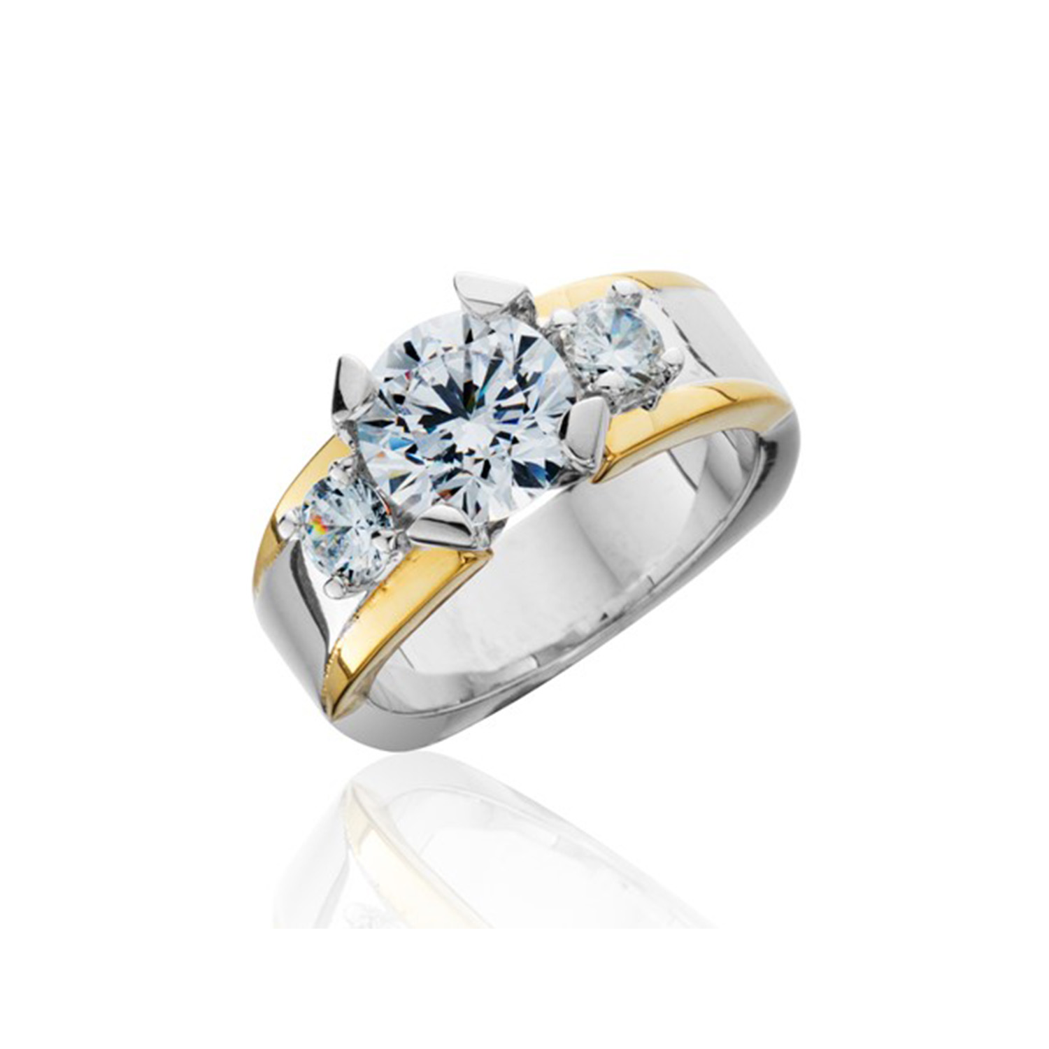 14k Two Tone 3 Stone Diamond Engagement Ring