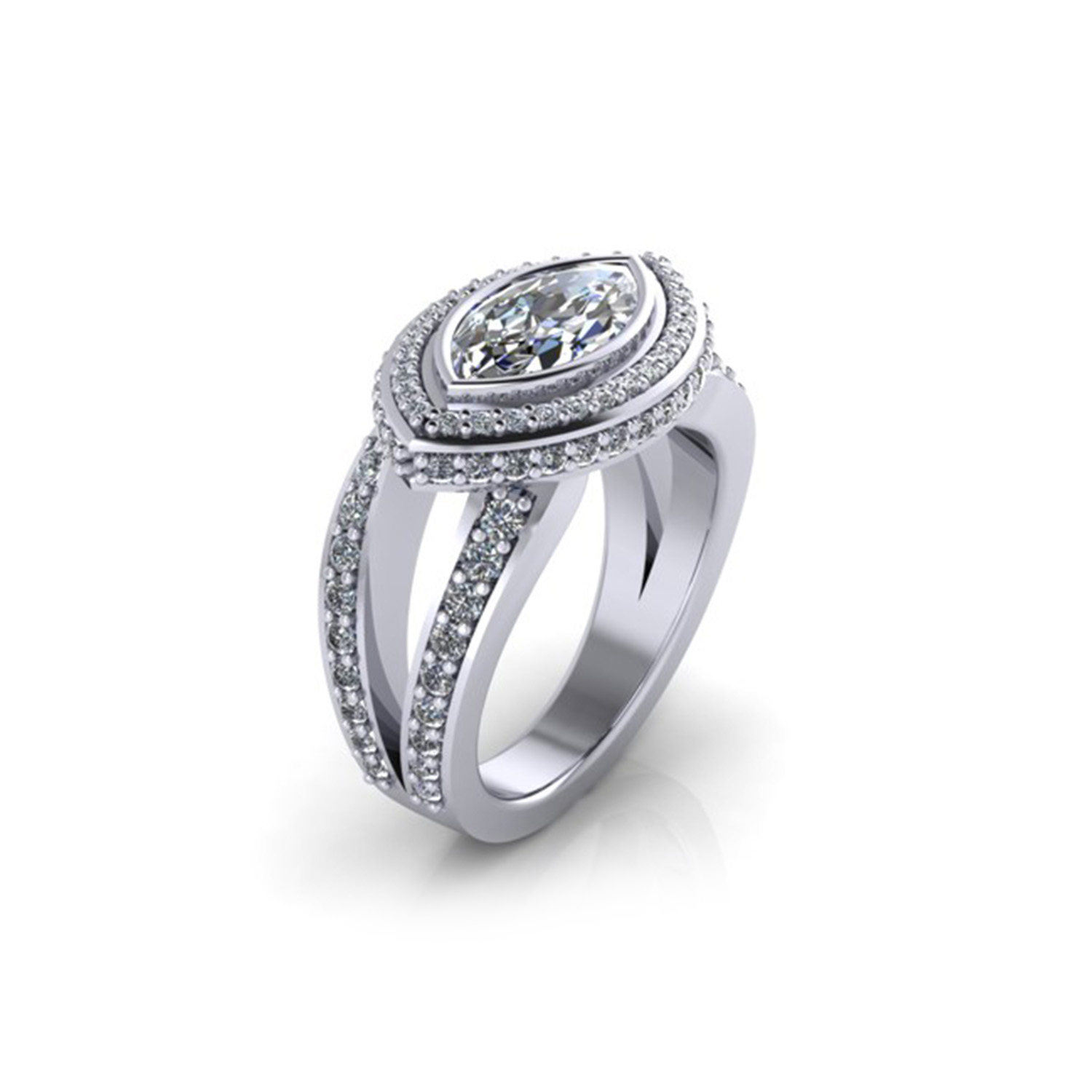 14k White Gold and Diamond Halo Marquise Engagement Ring