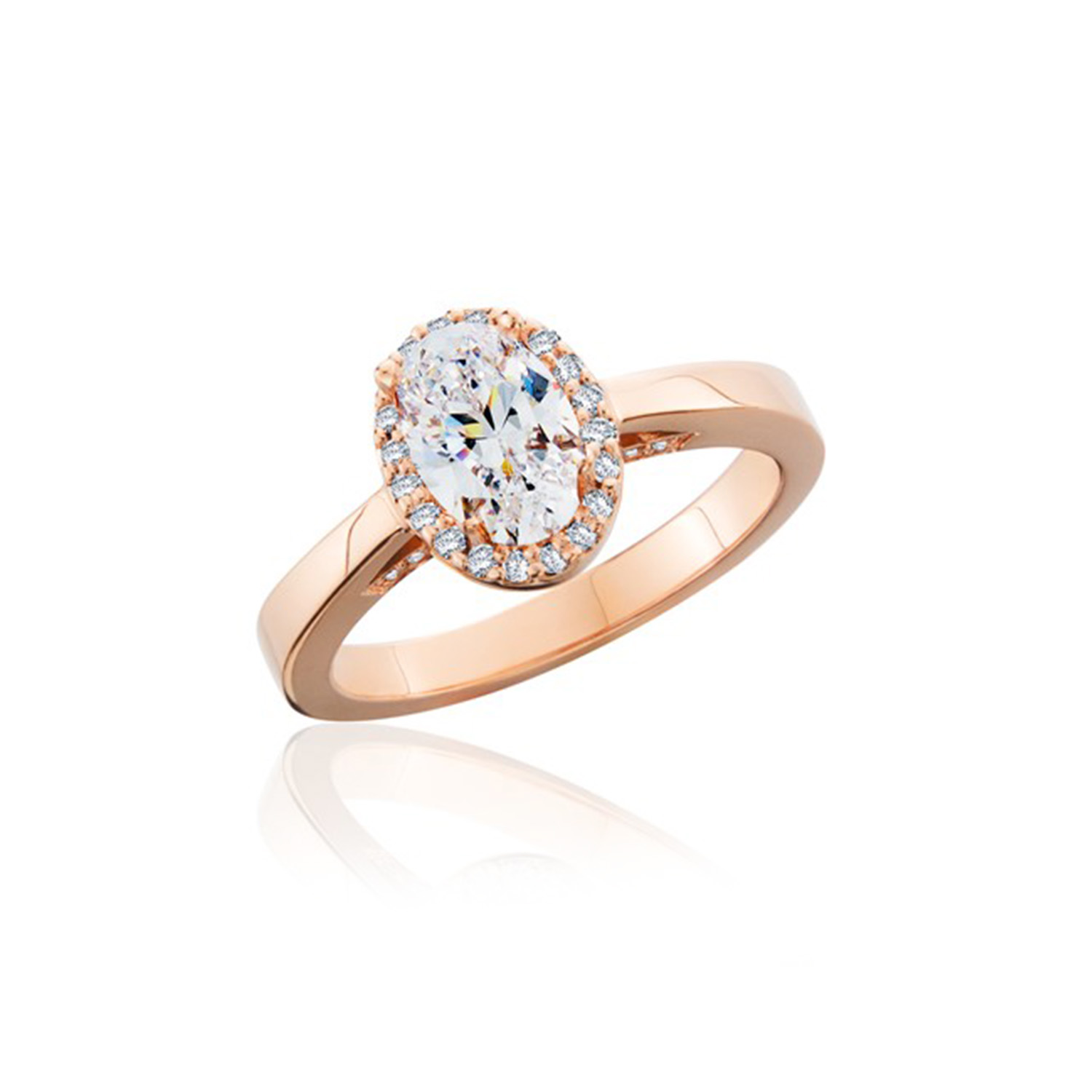 14k Rose Gold and Oval Diamond Halo Engagement Ring