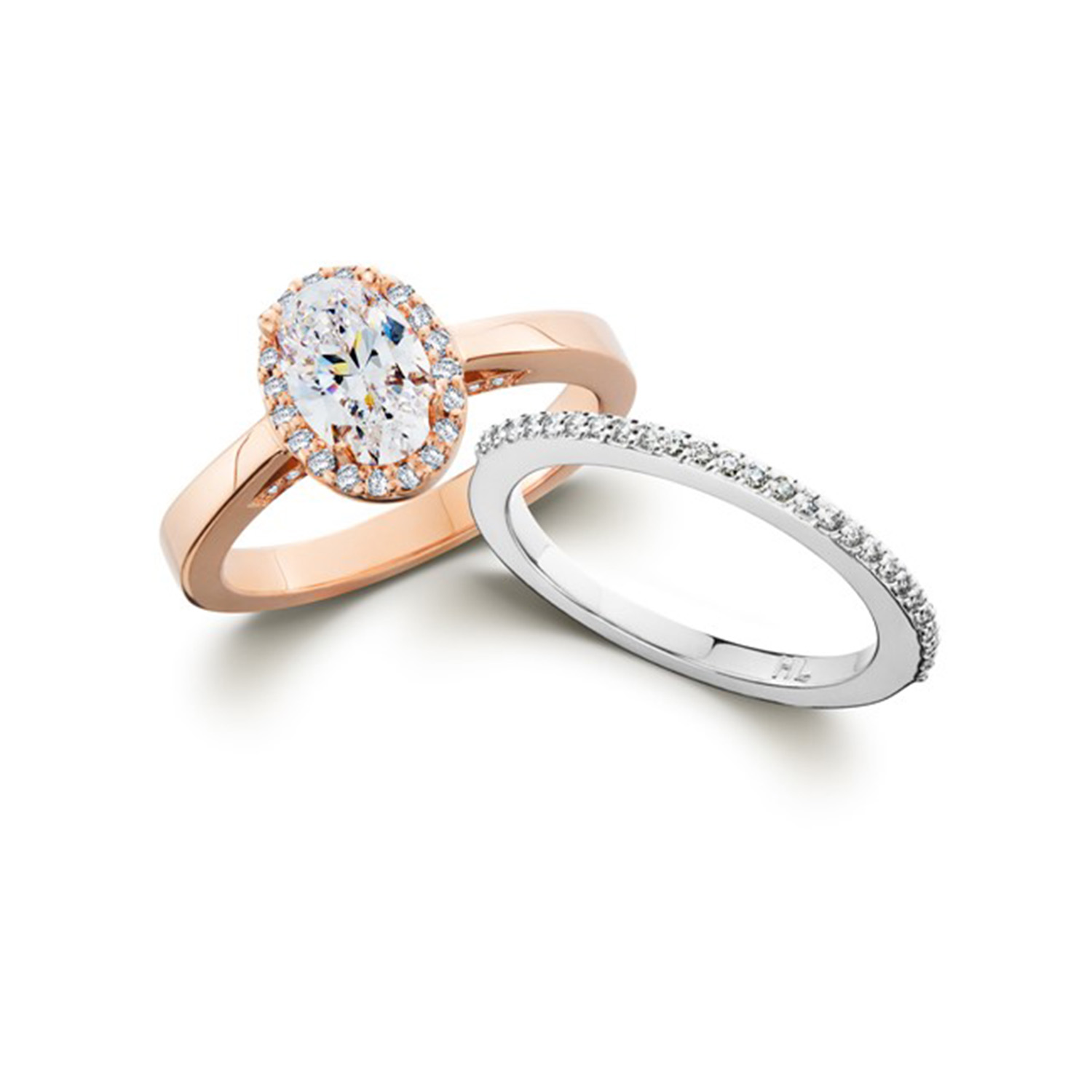 14k Rose Gold and Oval Diamond Halo Engagement Ring
