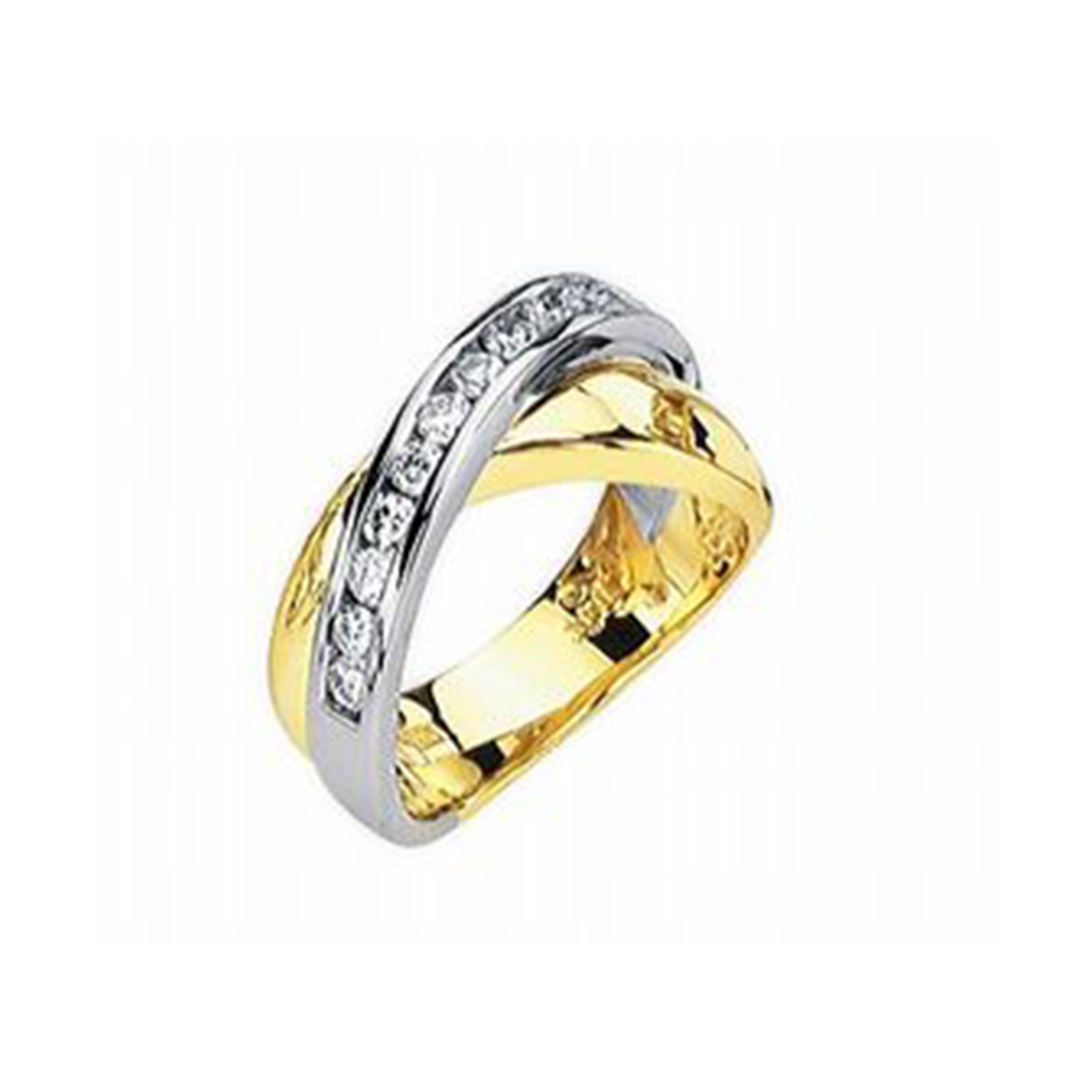 14k Two Tone Round Diamond Band