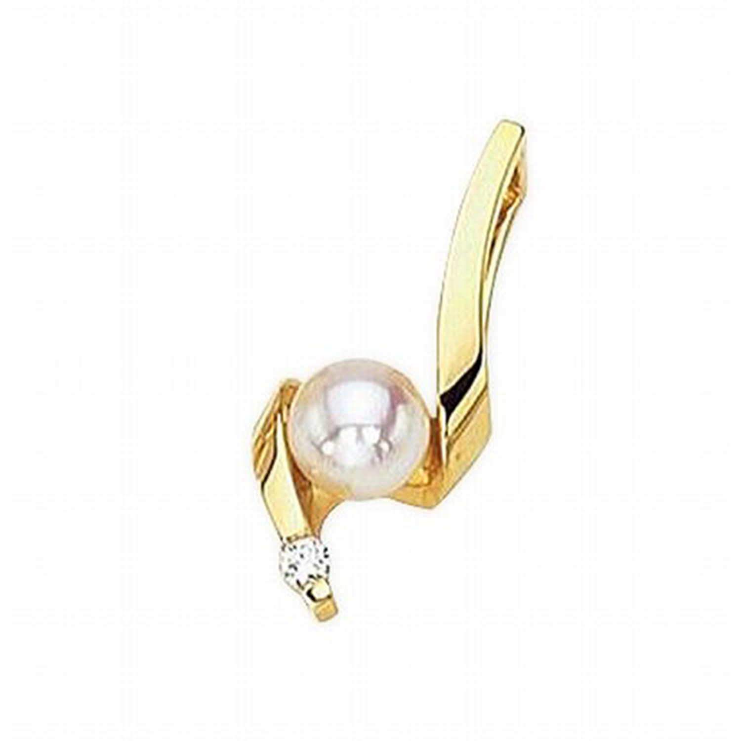 14k Yellow Gold Cultured Pearl And Diamond Slide