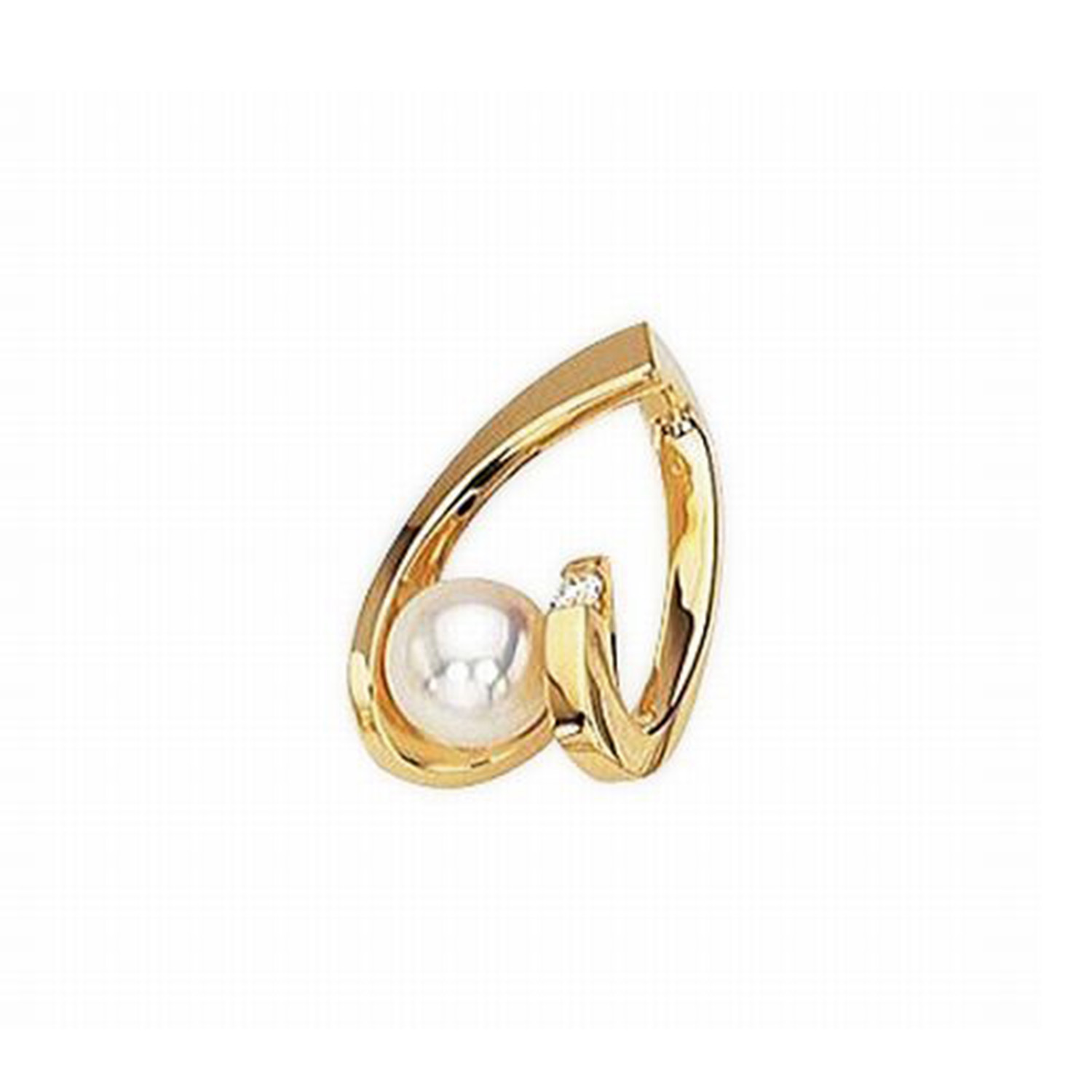 14k Yellow Gold Cultured Pearl And Diamond Slide