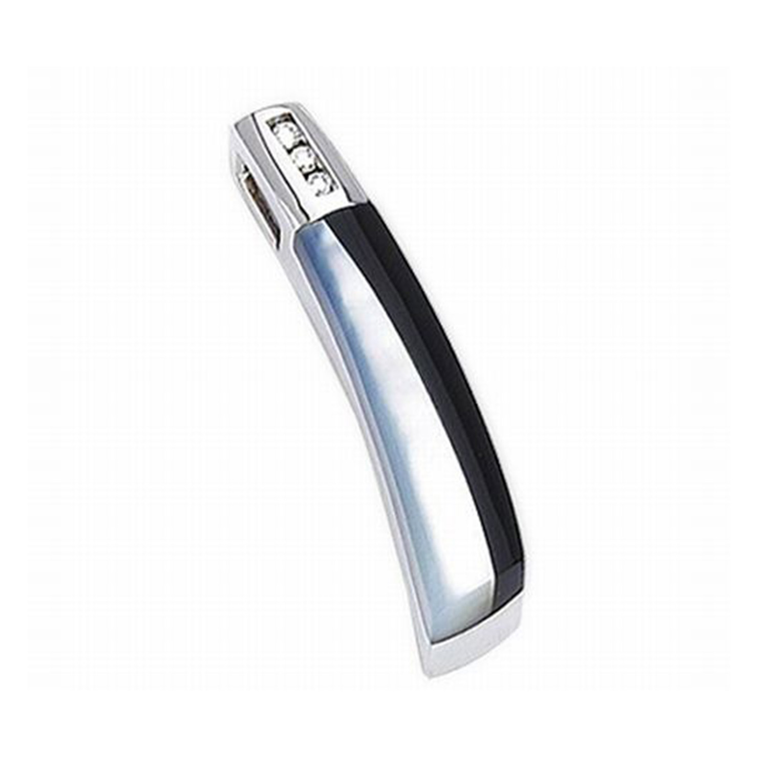 14k White Gold Onyx And Mother Of Pearl Diamond Pendant