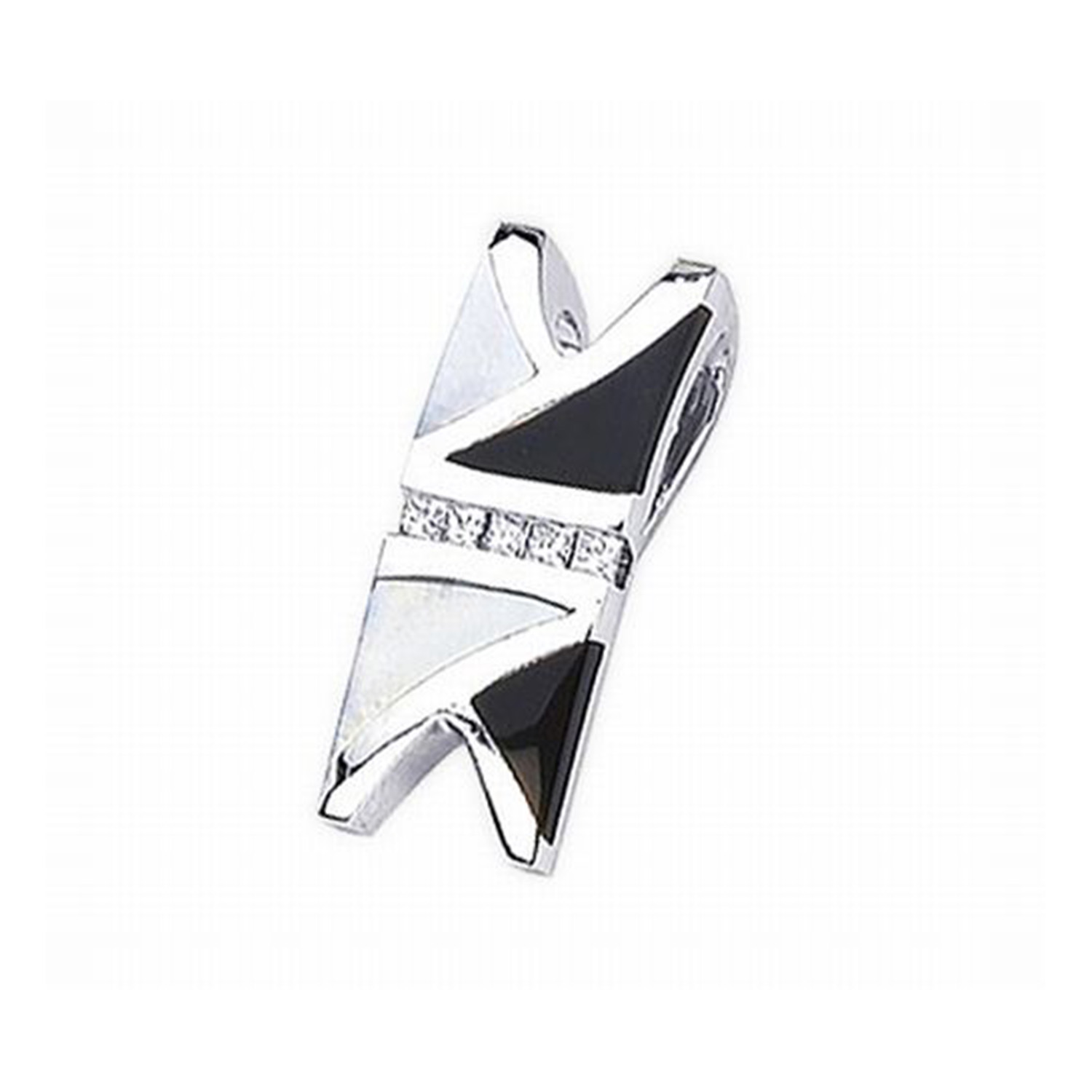 14k White Gold Onyx And Mother Of Pearl And Diamond Slide