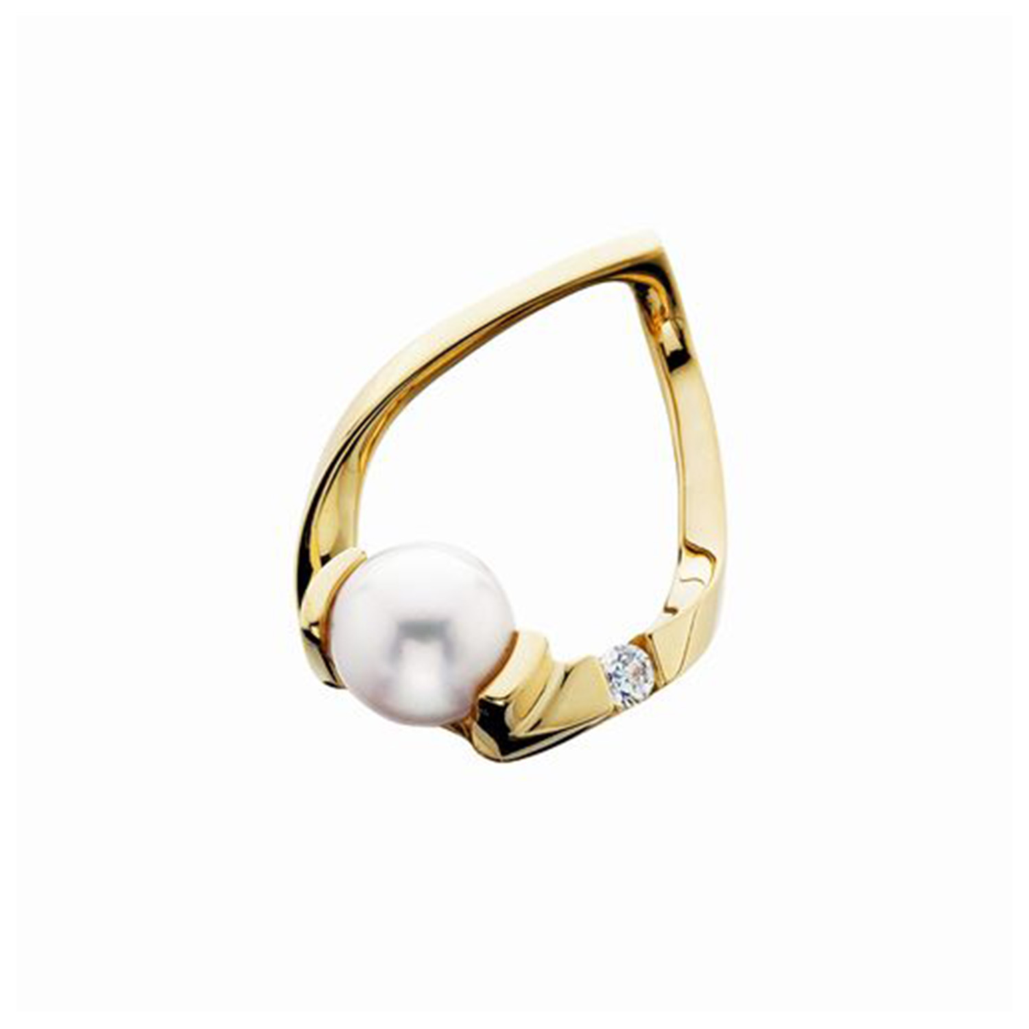 14k Yellow Gold Cultured Pearl And Diamond Slide