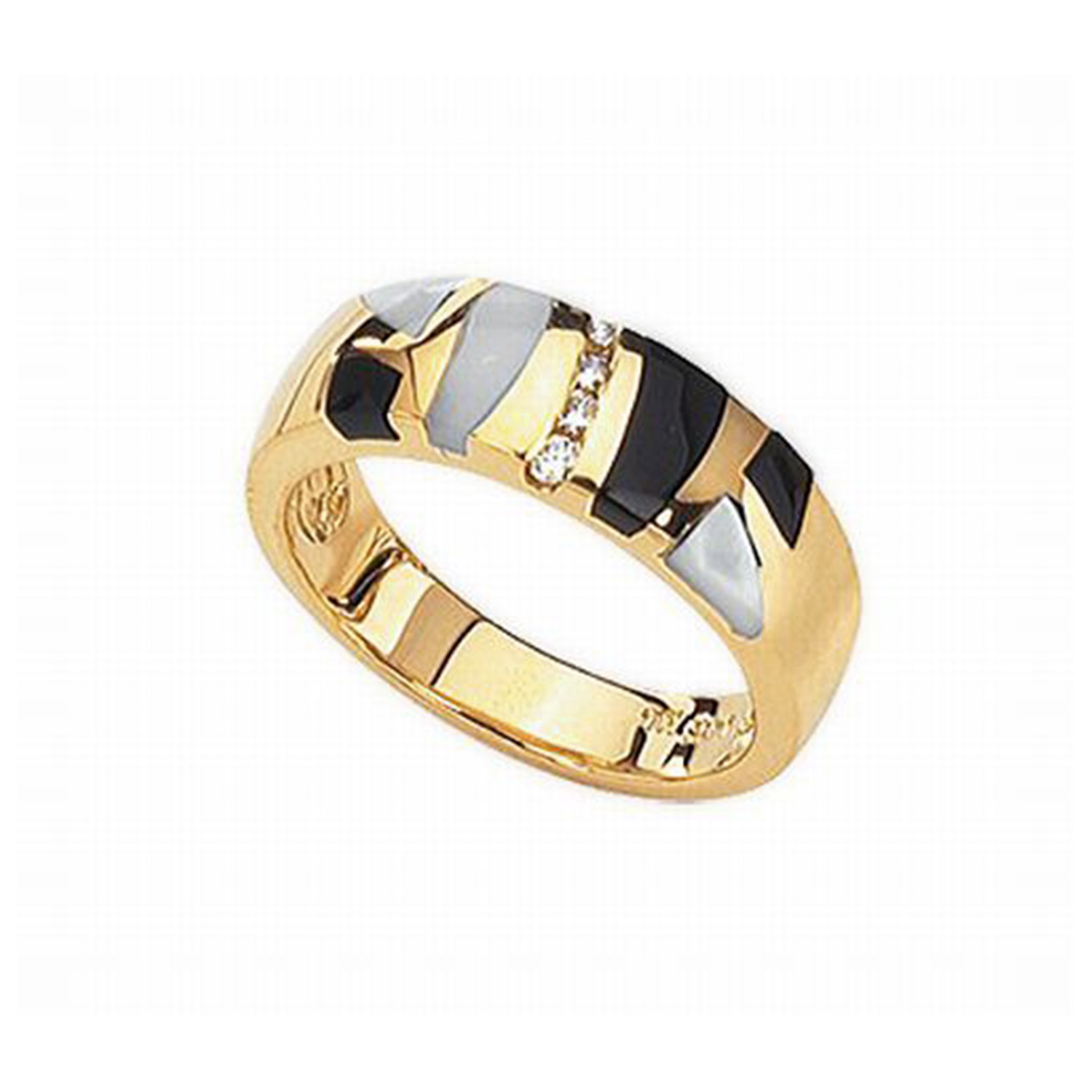 14k Yellow Gold Onyx and Mother Of Pearl and Diamond Ring