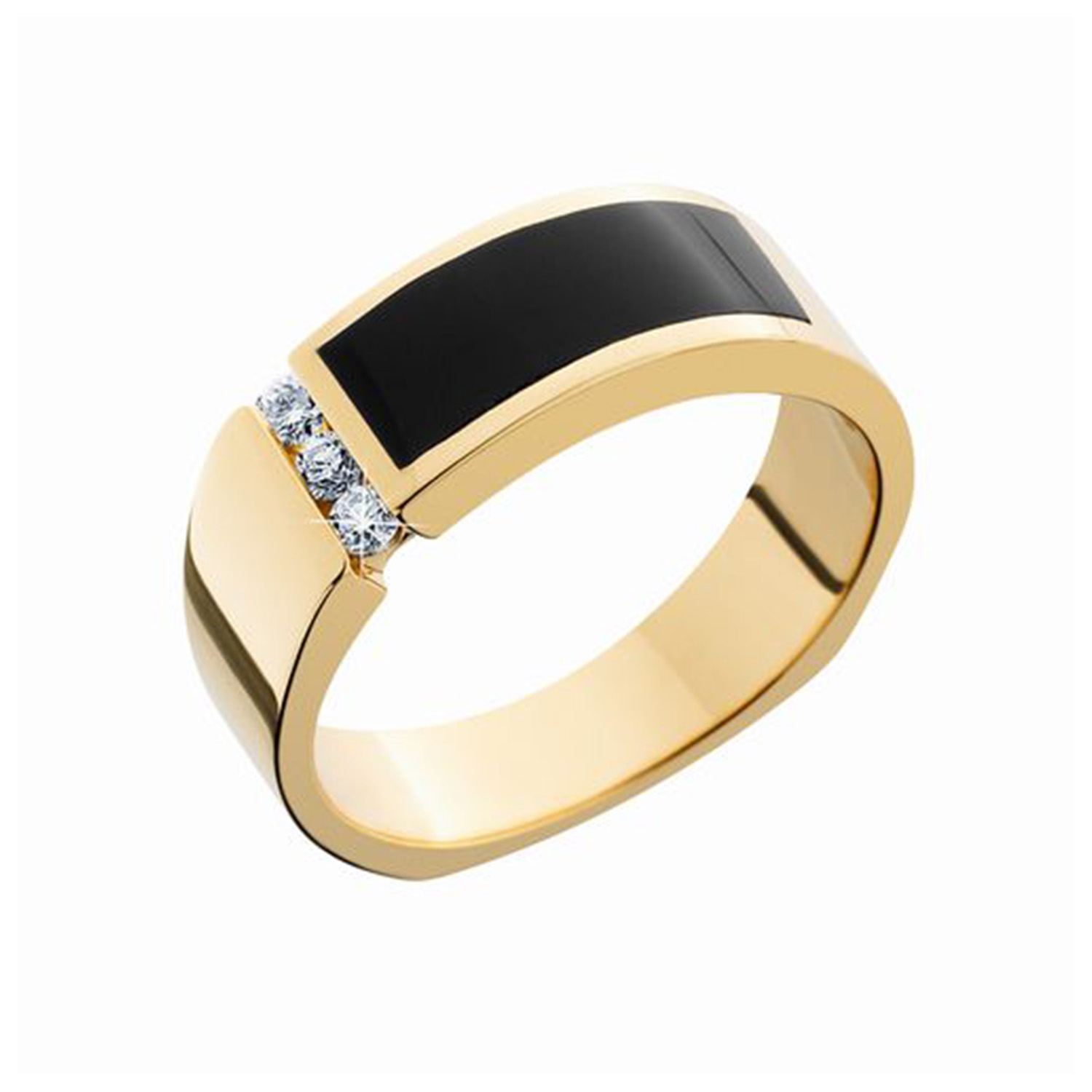 14k Yellow Gold Gents Onyx And Diamond Ring