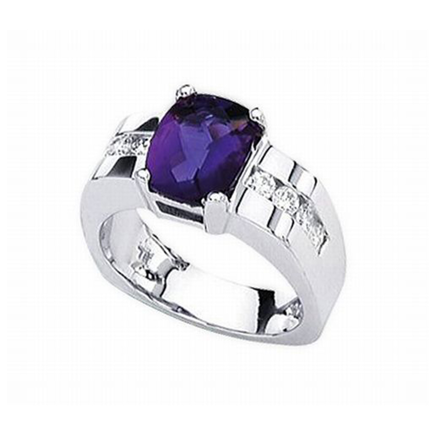 14k White Gold Amethyst And Diamond Ring