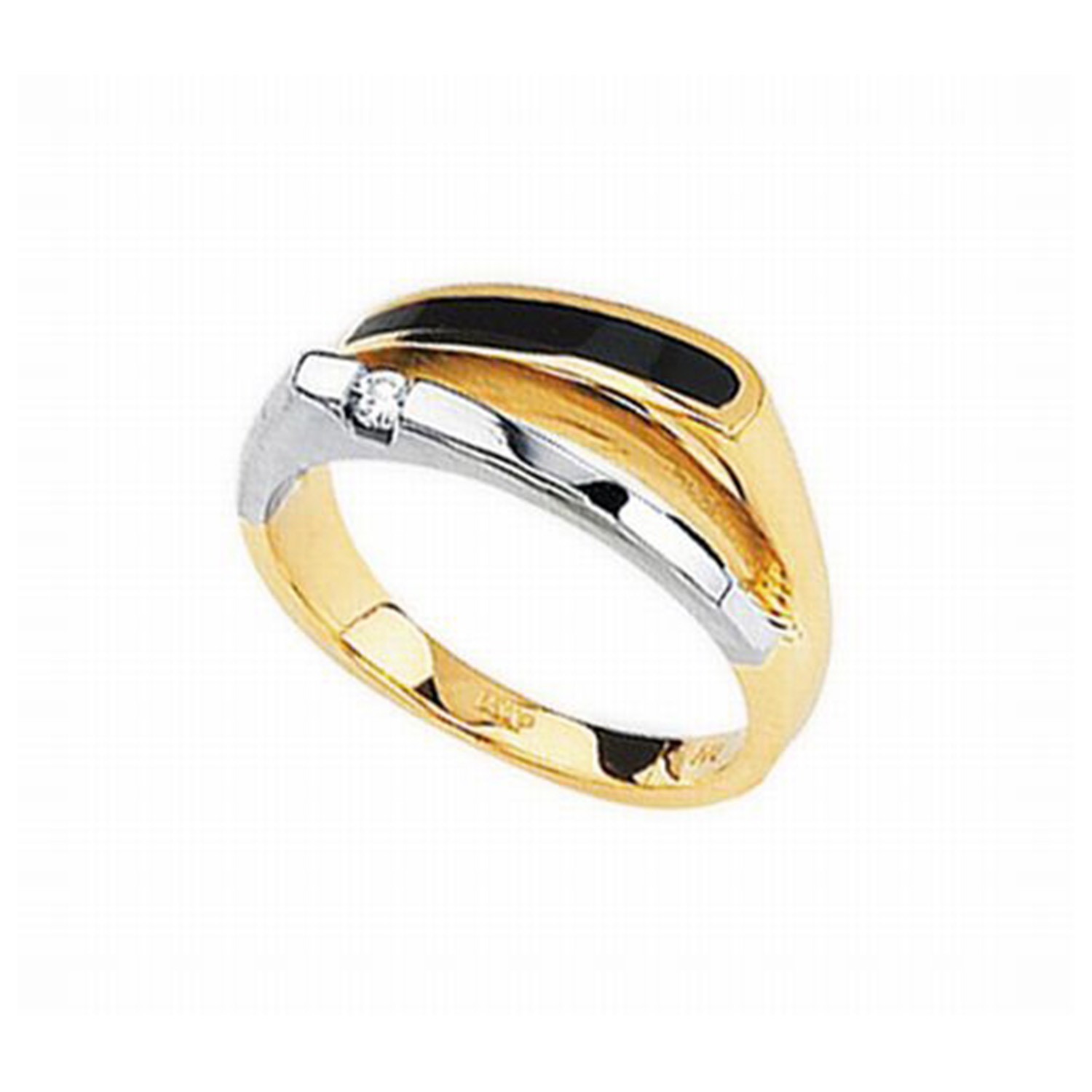 14k Two Tone Onyx And Diamond Ring