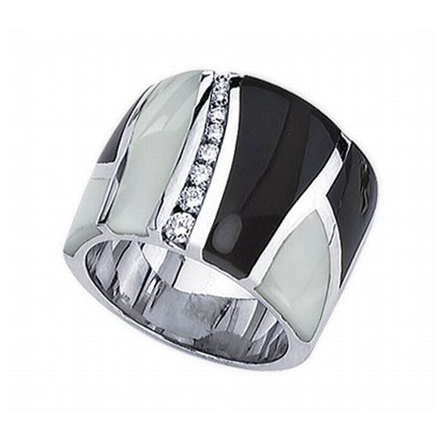 14k White Gold Onyx and Mother Of Pearl and Diamond Ring