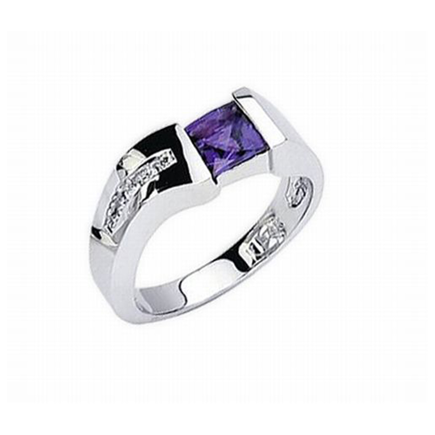 14k White Gold Amethyst and Diamond Ring