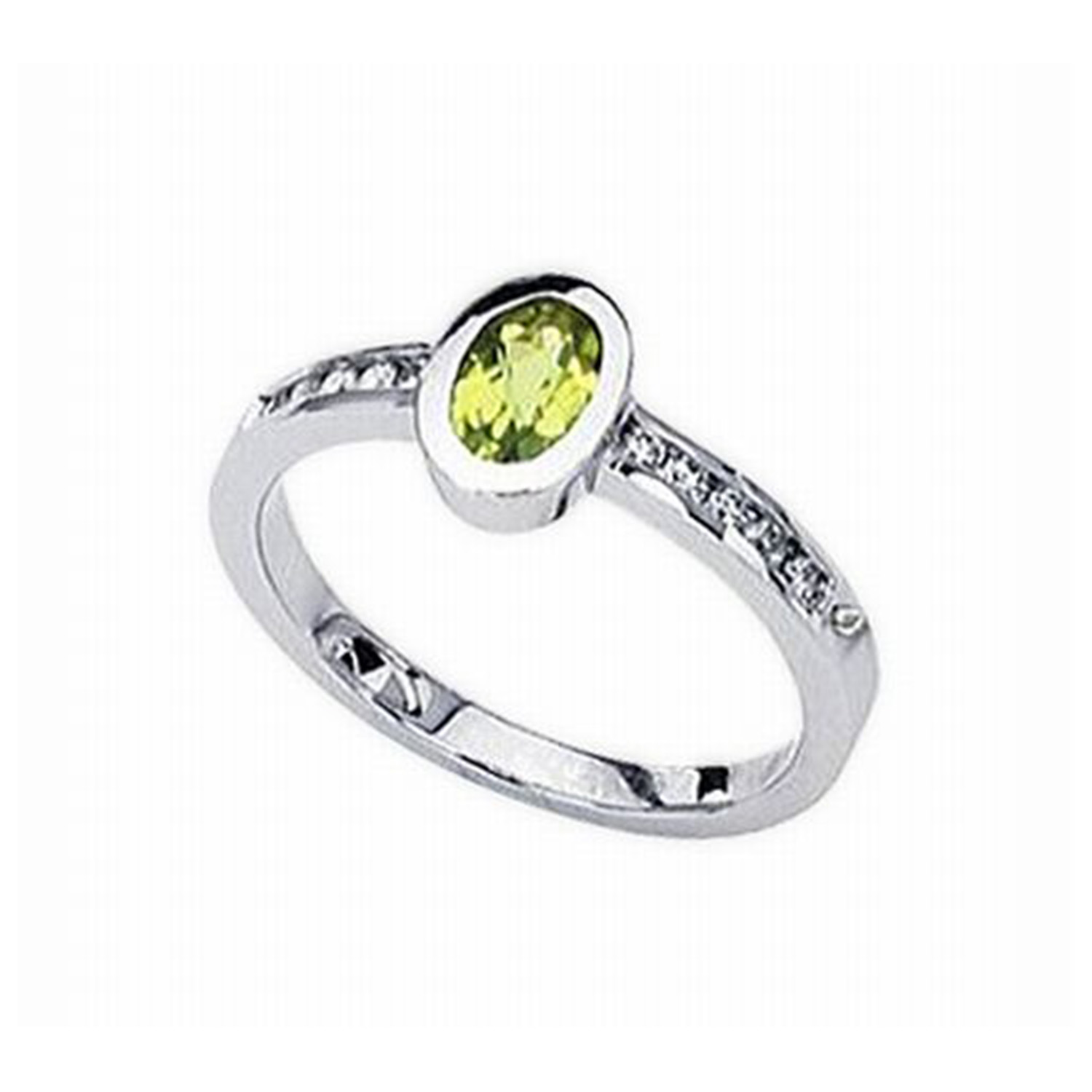 14k White Gold Peridot And Diamond Ring