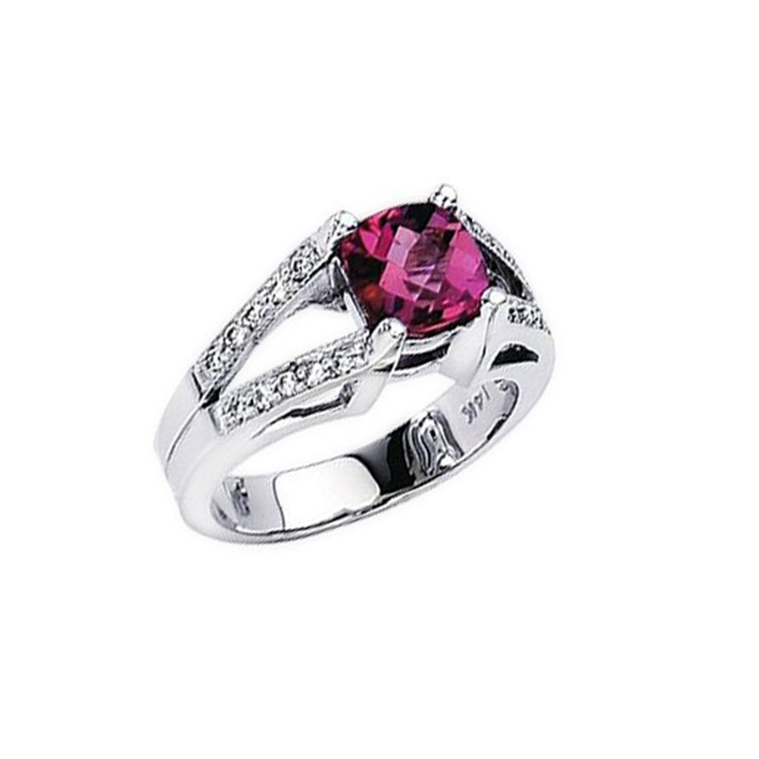 14k White Gold Pink Tourmaline And Diamond Pave Ring
