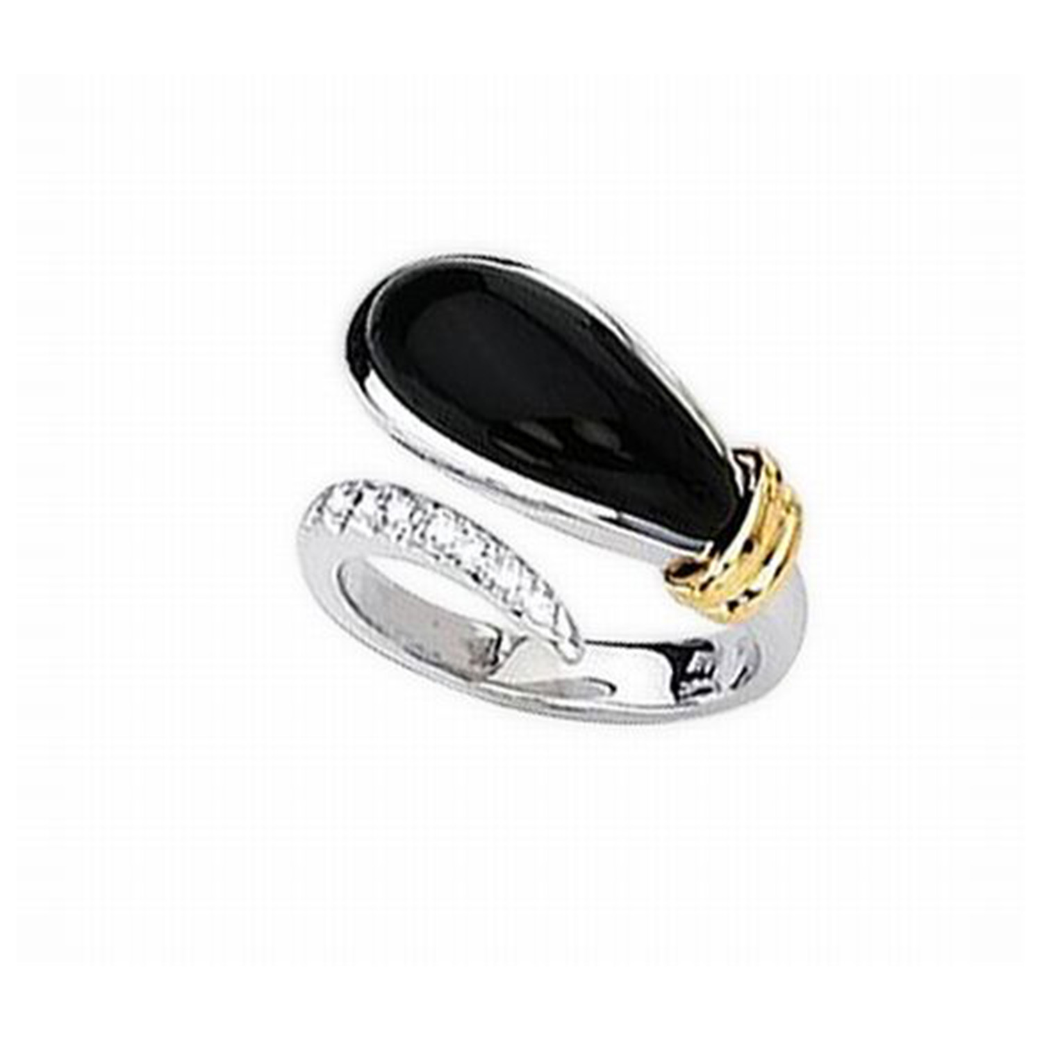 14k Two Tone Onyx And Diamond Pave Ring