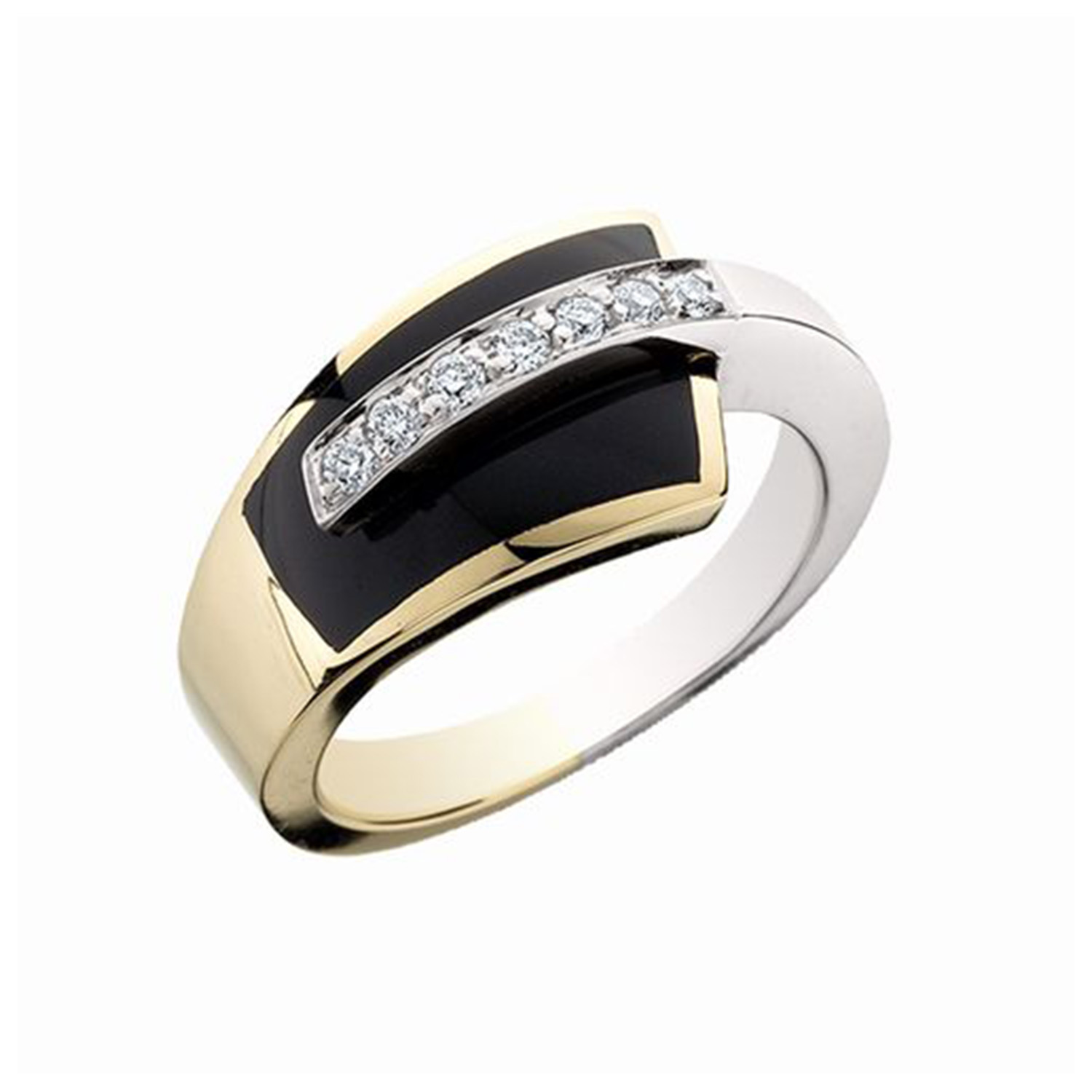 14k Two Tone Onyx And Diamond Pave Ring