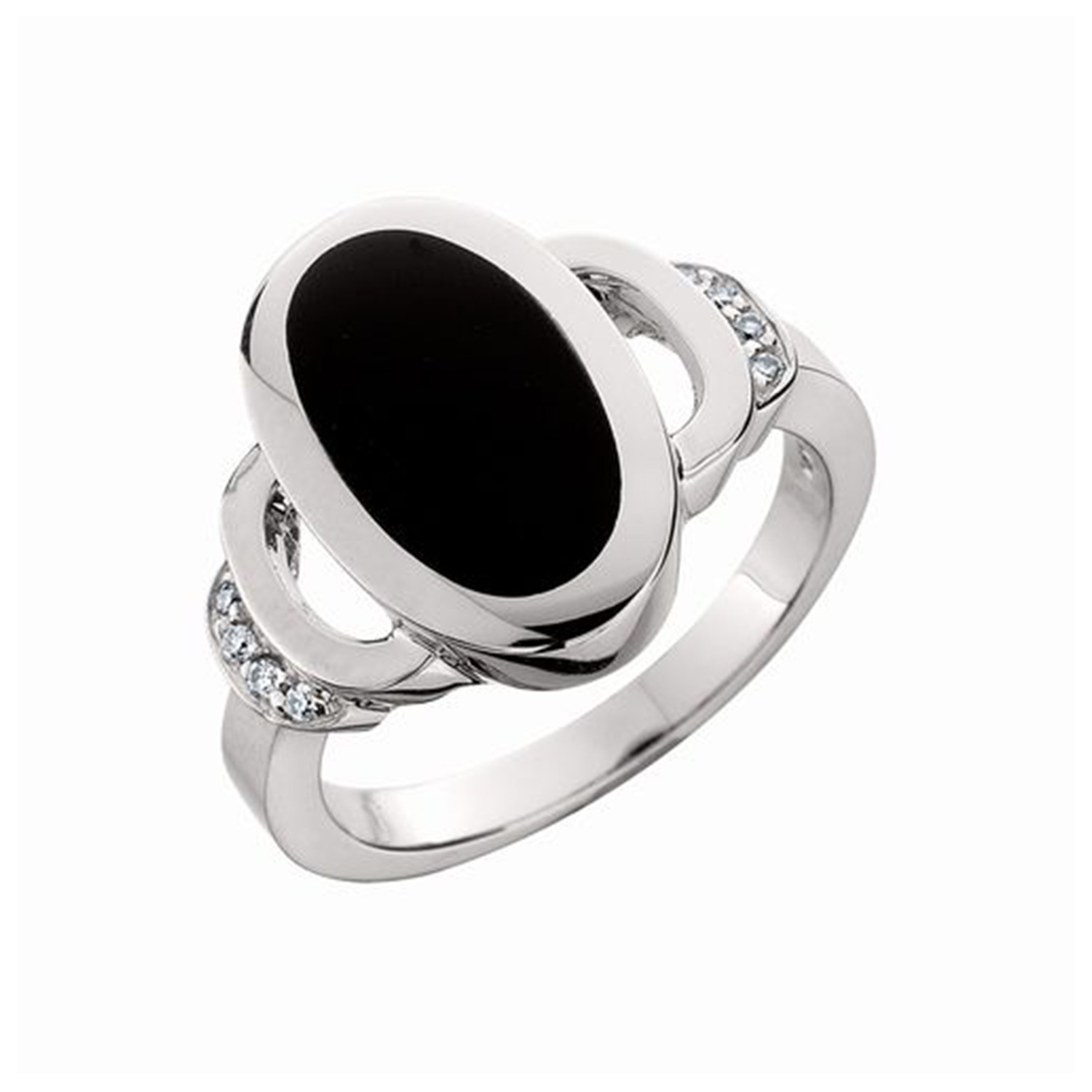 14k White Gold Onyx And Diamond Ring