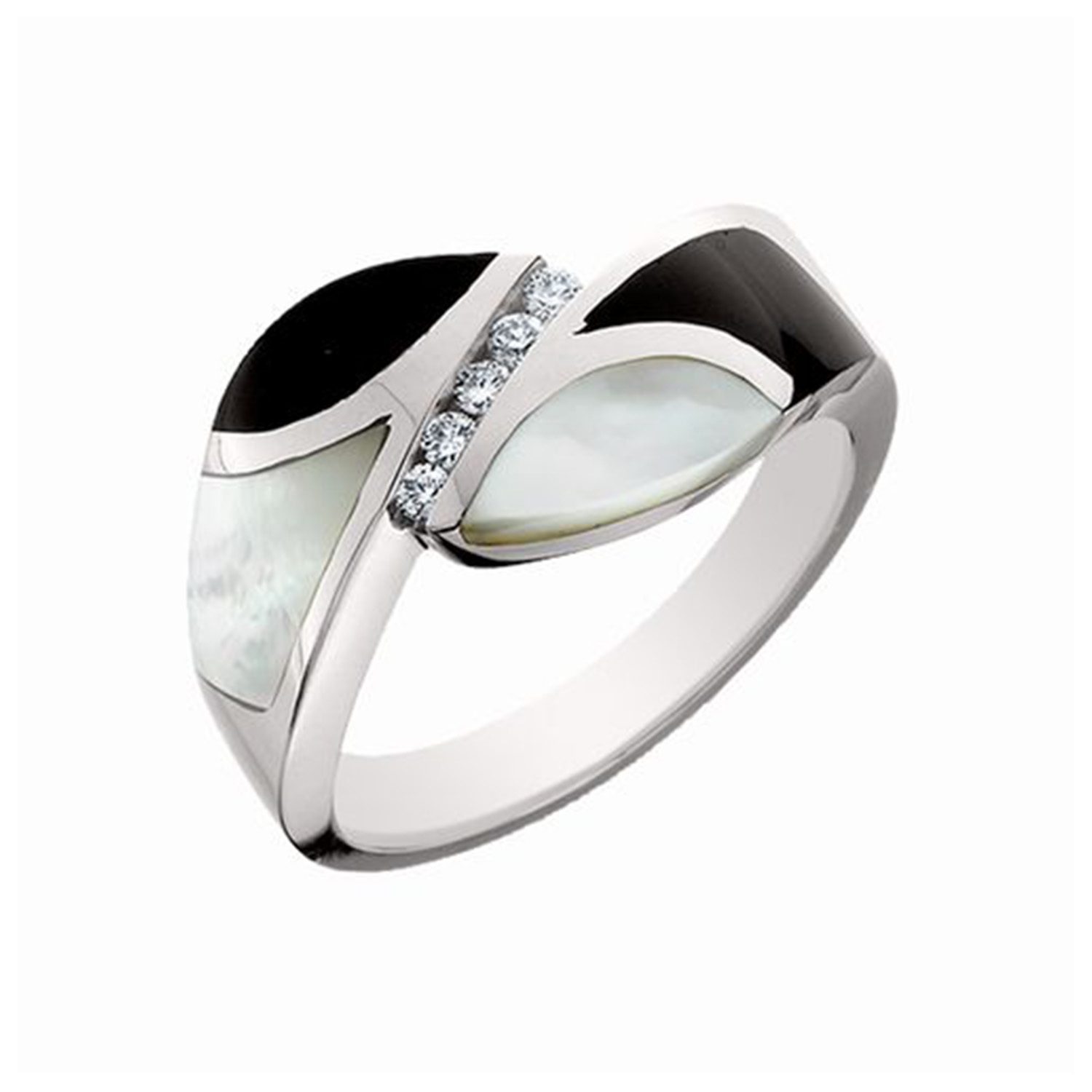 14k White Gold Onyx And Mother Of Pearl and Diamond Ring