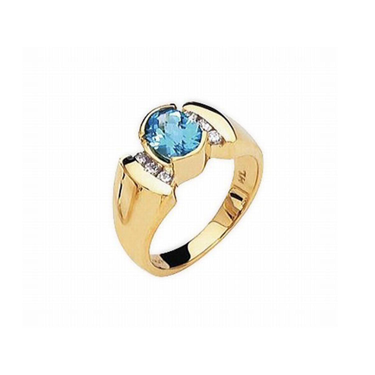 14k Yellow Gold Blue Topaz And Diamond Ring