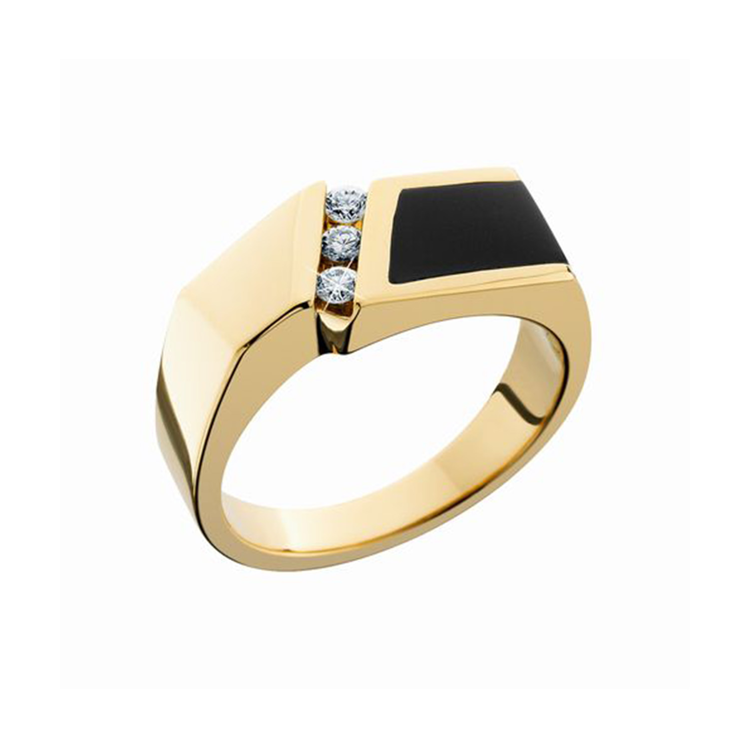 14k Yellow Gold Gents Black Onyx And Diamond Ring