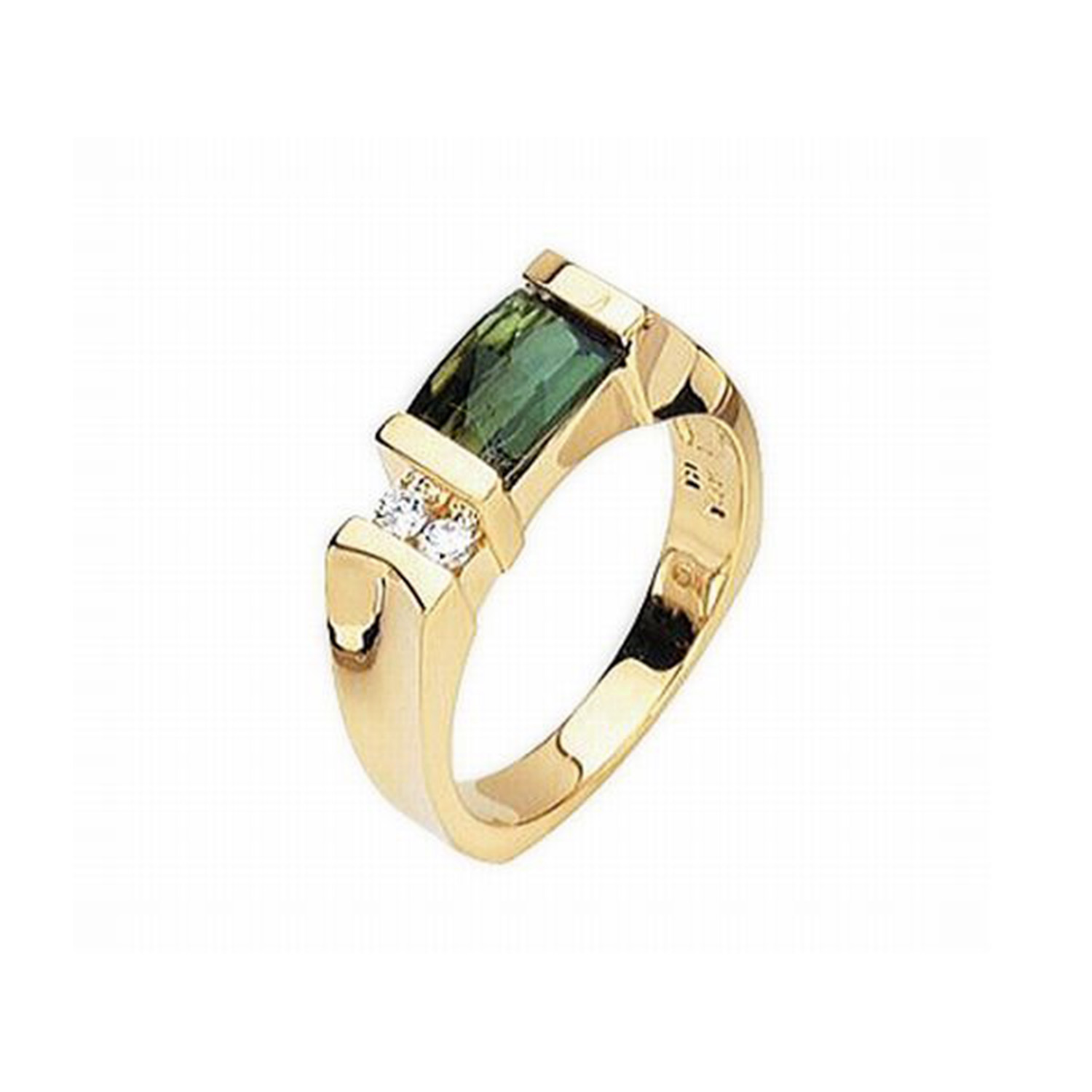 14k Yellow Gold Green Tourmaline And Diamond Ring