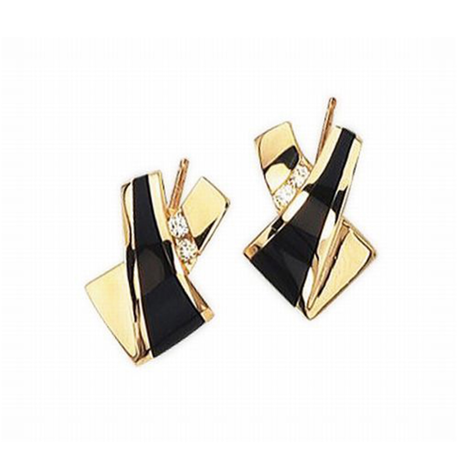 14k Yellow gold Onyx And Diamond Earrings