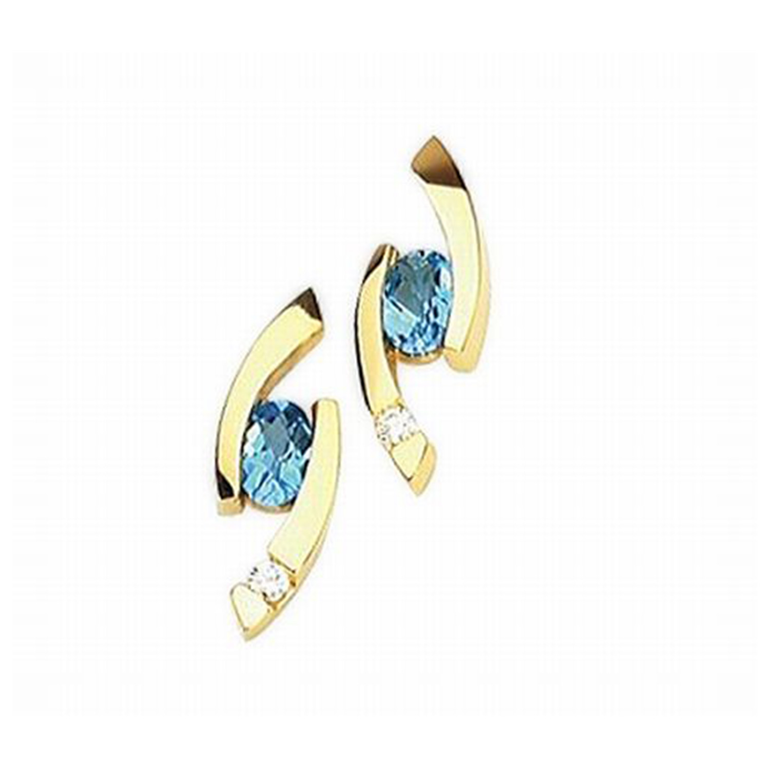 14k Yellow Gold Blue Topaz And Diamond Earrings
