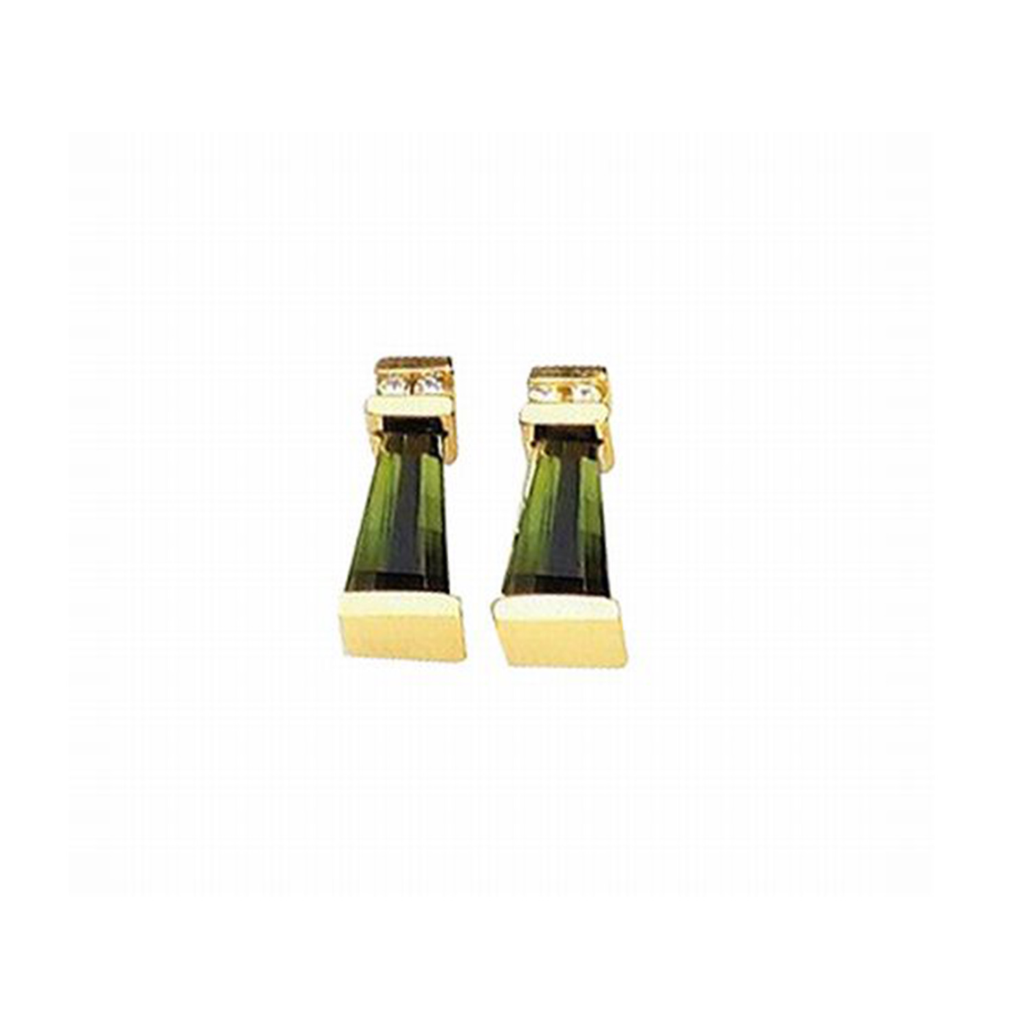 14k Yellow Gold Green Tourmaline And Diamond Earrings