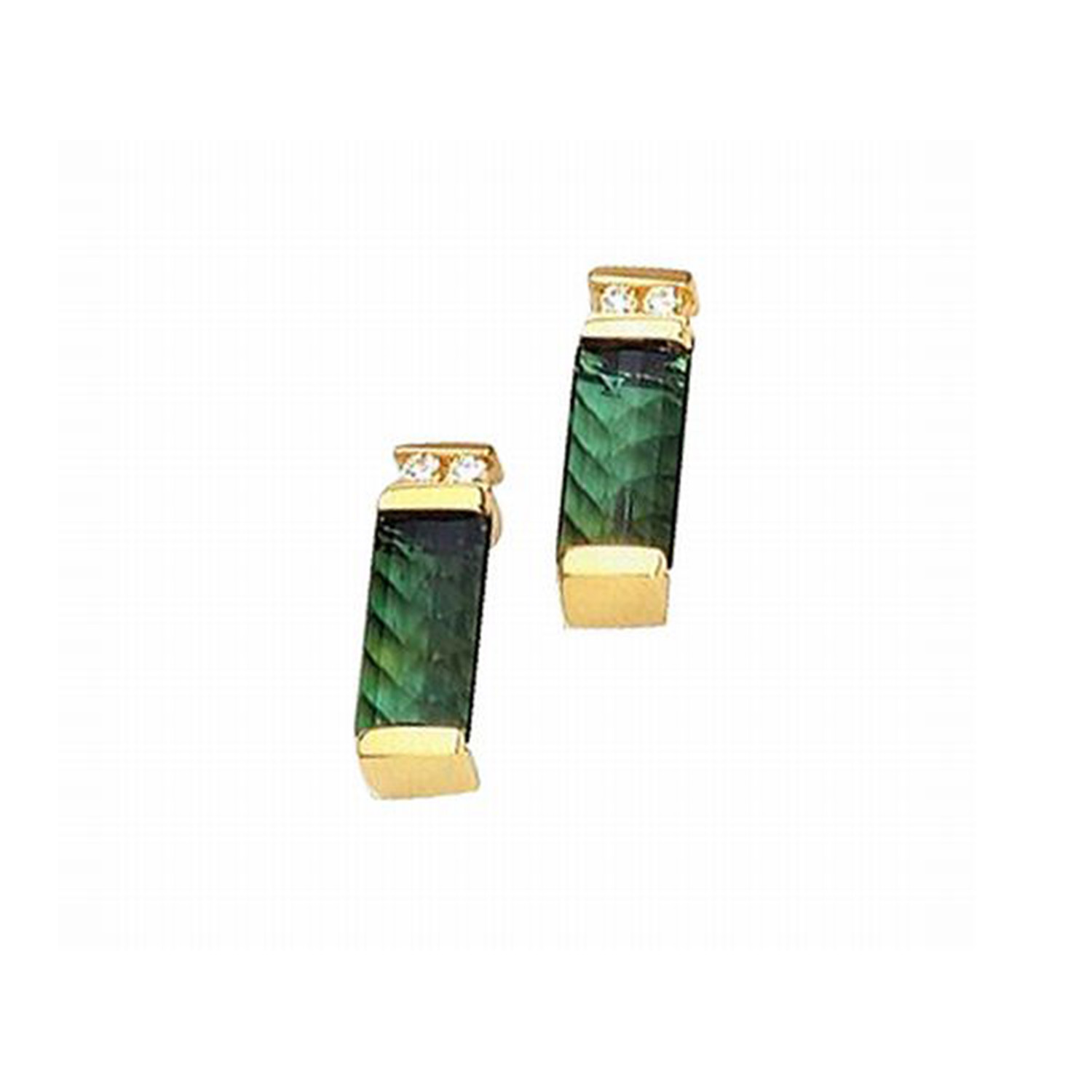 14k Yellow Gold Laser Cut Green Tourmaline And Diamond Earrings