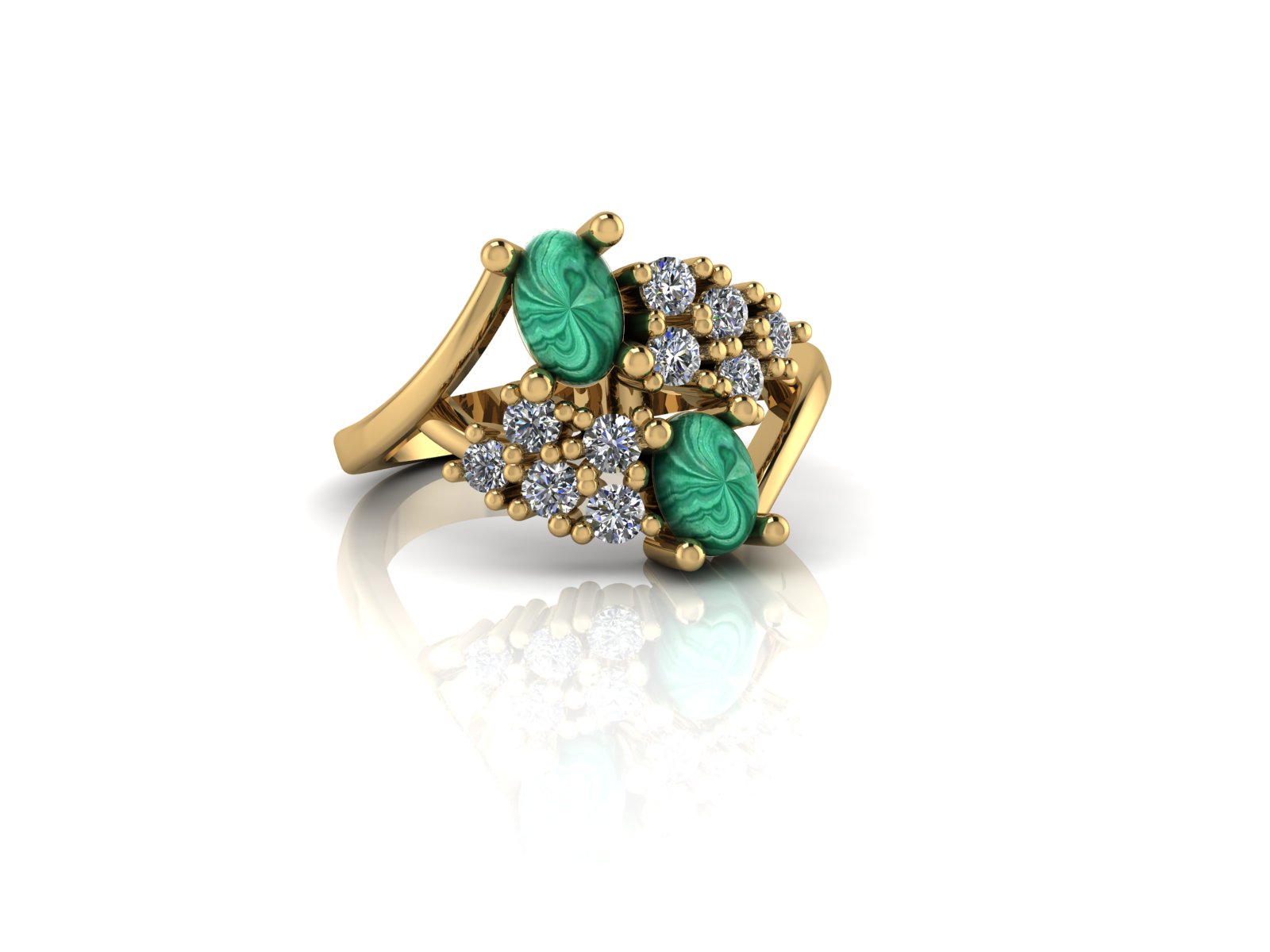 Custom 14K Yellow Gold Malachite and Diamond Ring