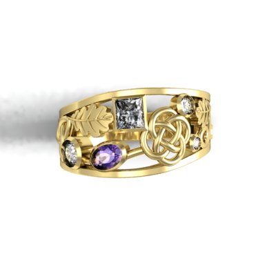 Custom 14K Yellow Gold Diamond and Gemstone Fashion Ring