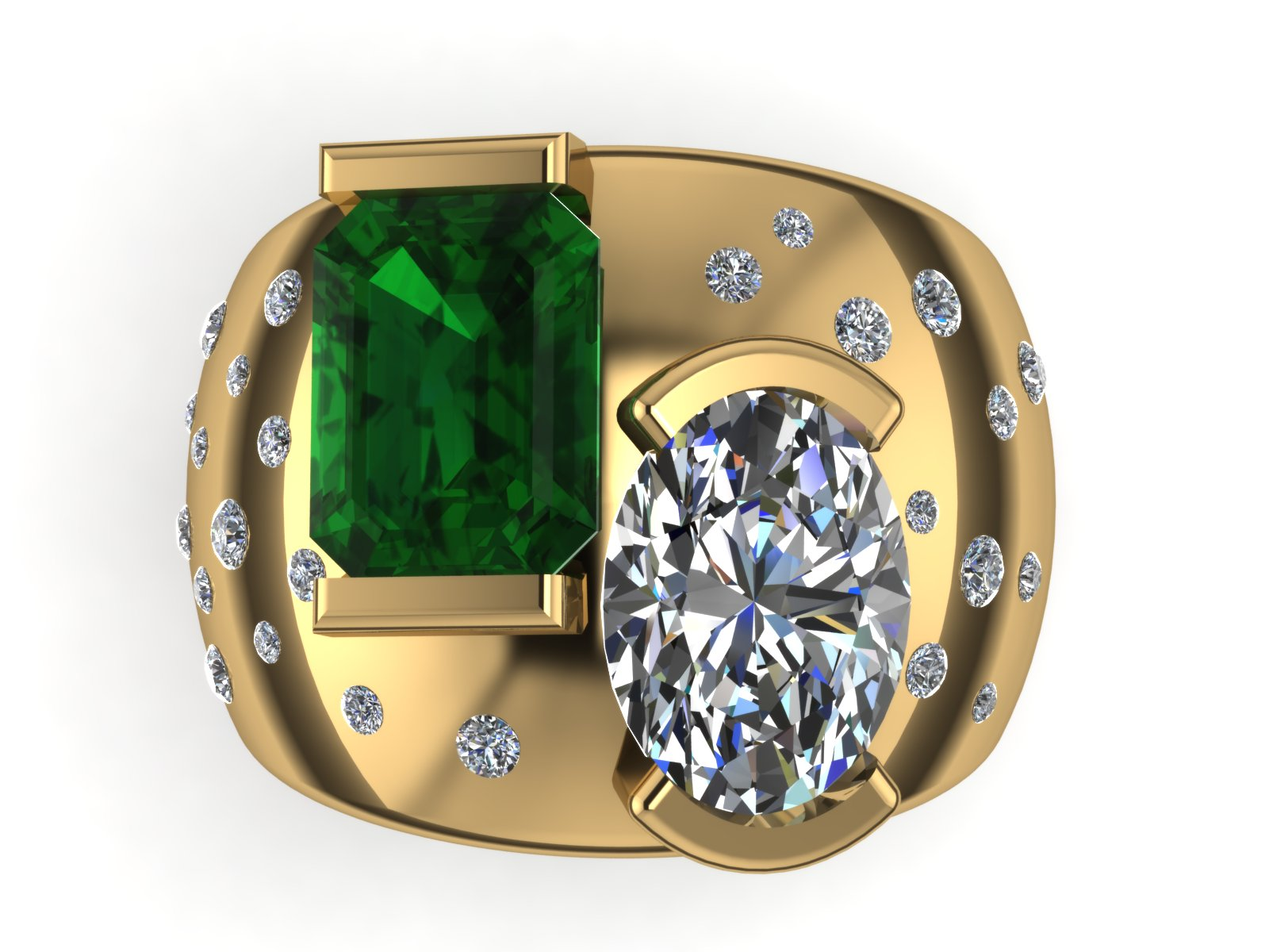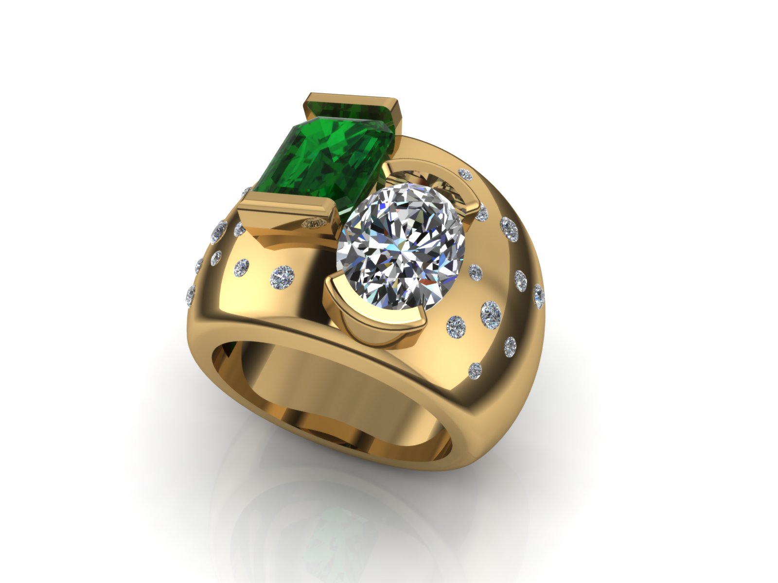 Custom 14K Yellow Gold Diamond and Gemstone Fashion Ring